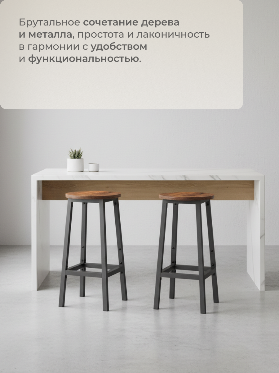 Стильный стул Лофт 300х300х650 мм: 2 прочных барных стула из ДСП и стали, выдерживают до 130 кг, идеальны для кухни и дачи