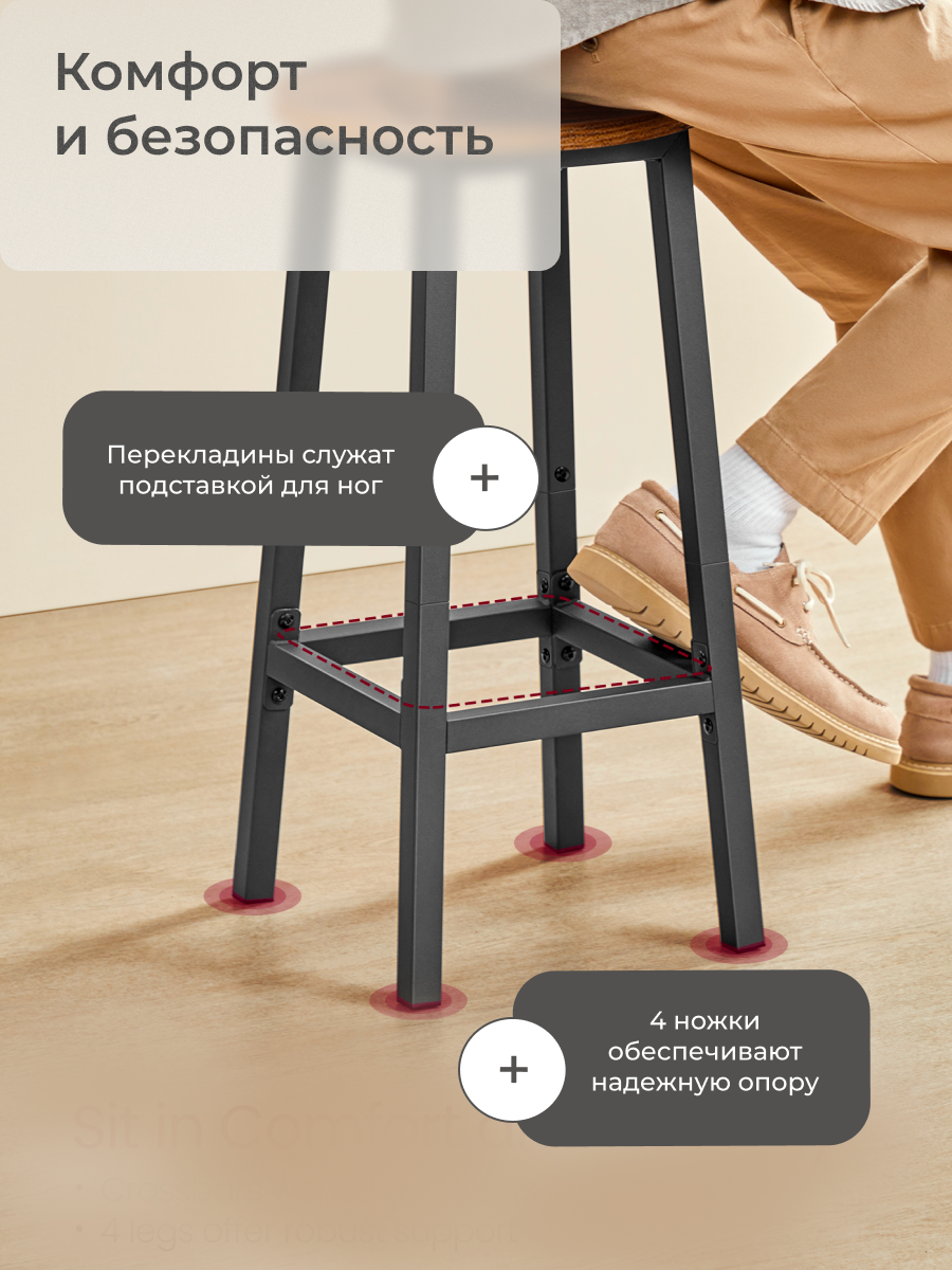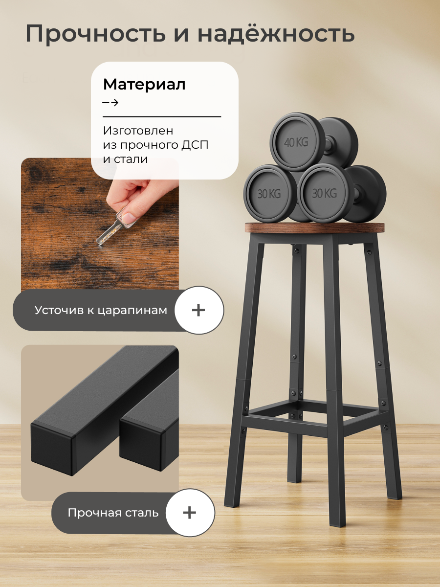 Стул Лофт LBC32X — это удачное сочетание минимализма и надежности. Круглое сиденье из ДСП на металлических ножках обеспечивает стабильность, а крепление на болтах гарантирует простую сборку и долговечность конструкции. Если вы ищете, какой барный стул выбрать для кухни или дачи, обратите внимание на эту модель: она выдерживает нагрузку до 130 кг, не занимает много места и подходит для любых современных пространств.