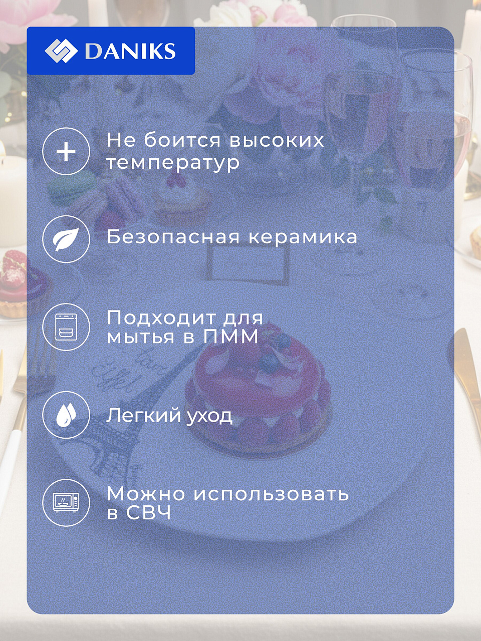 - Уникальный дизайн с мотивами Парижа — стильная сервировка десерта или закусок