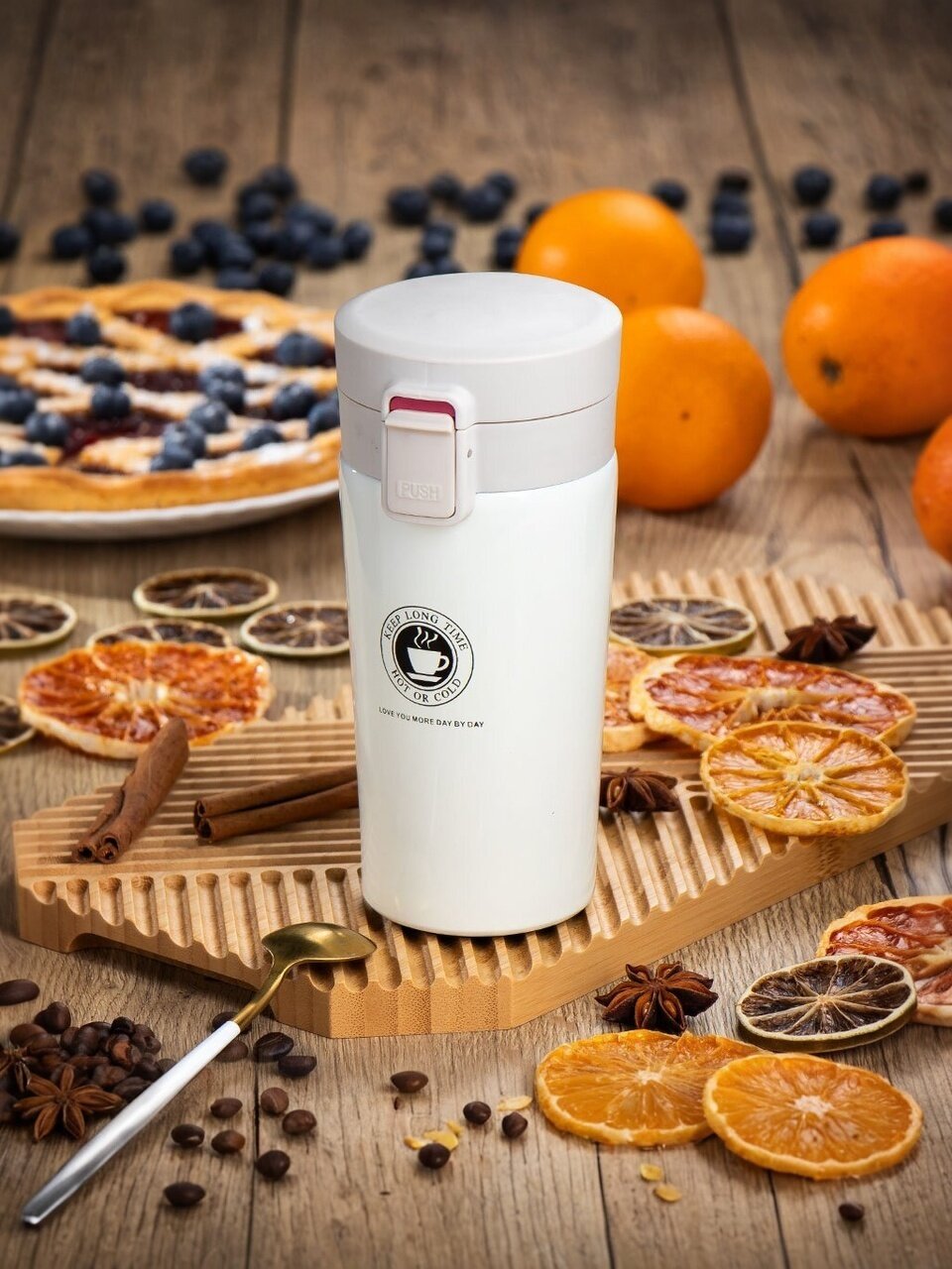 В отличие от аналогов из пластика или керамики, эта модель из нержавеющей стали устойчива к ударам и не впитывает запахи. Подходит ли термокружка для кофе, чая, лимонада? Да, материал не влияет на вкус, а объём 0.38 л — идеален для стандартной порции напитка. Если вы сомневаетесь, чем отличается термокружка с кнопкой от обычной — кнопочная крышка защищает от случайного пролива и удобна в дороге.