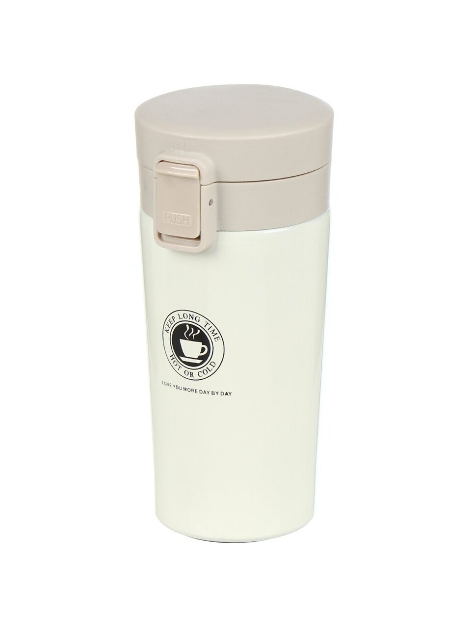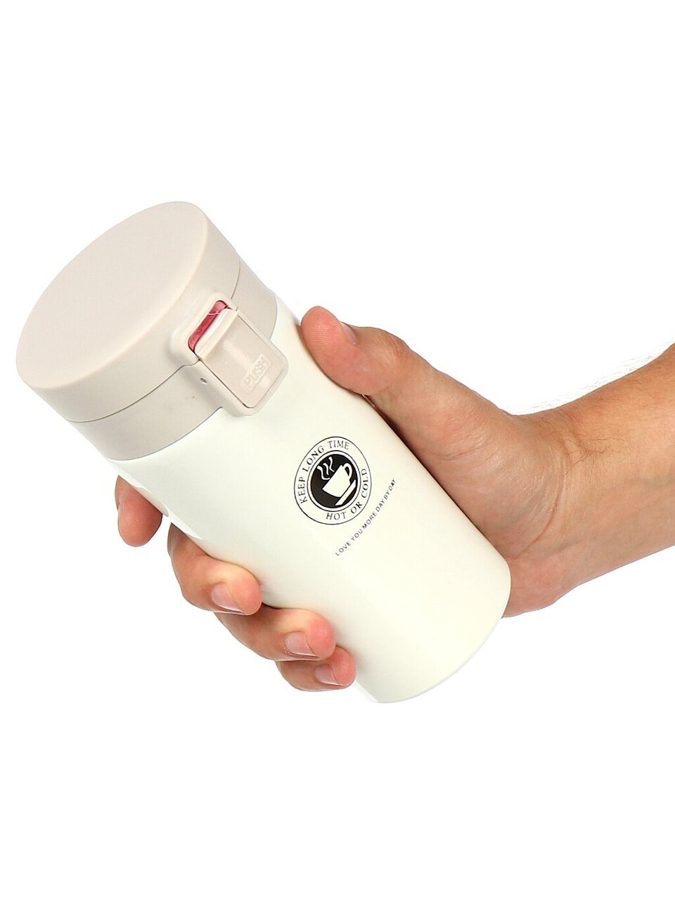 Термокружка из нержавеющей стали 0.38 л с ситечком и кнопочной крышкой — сохраняет напитки горячими или холодными до 6 часов. Идеальный вариант для города, дома и поездок.
