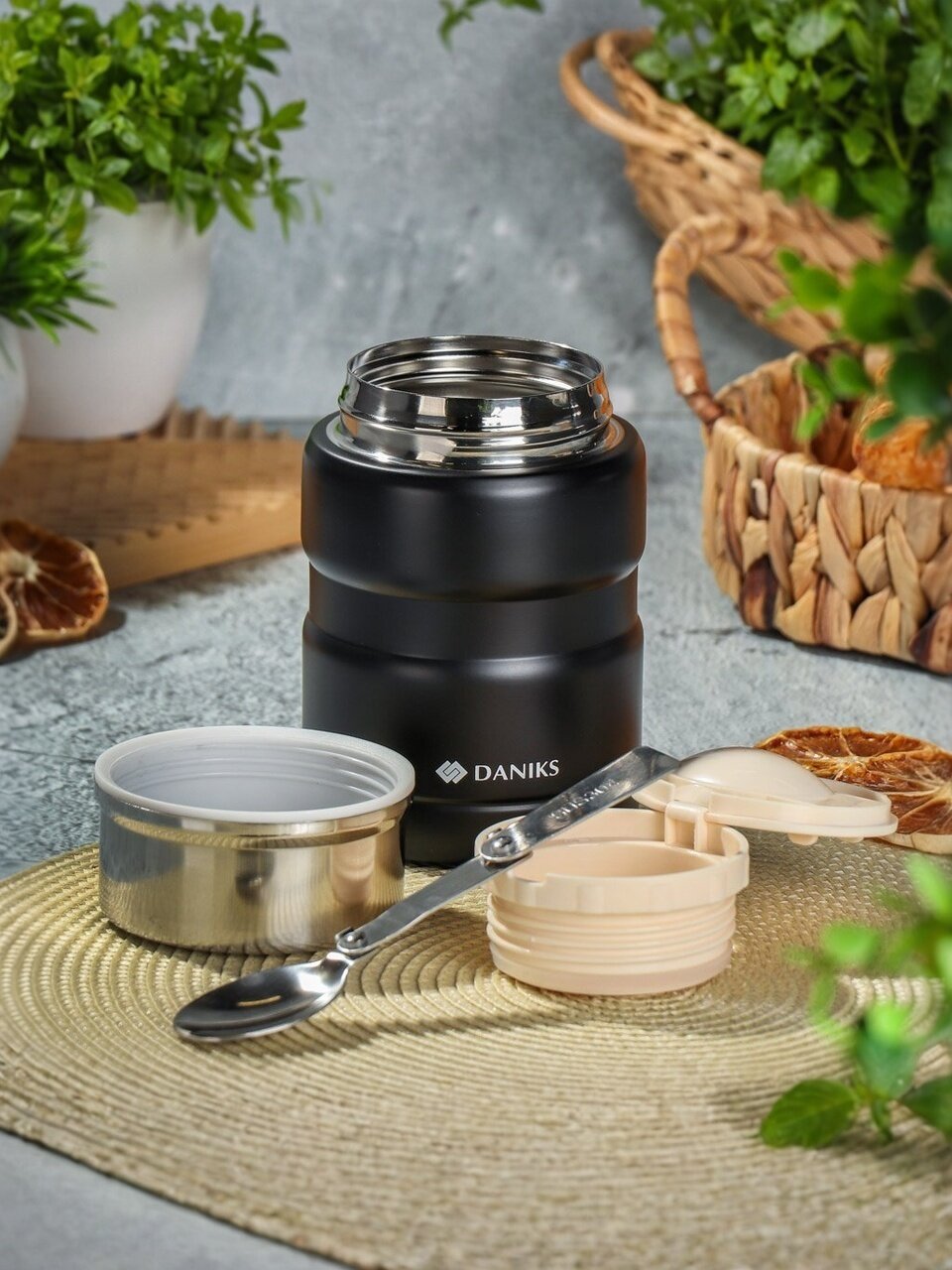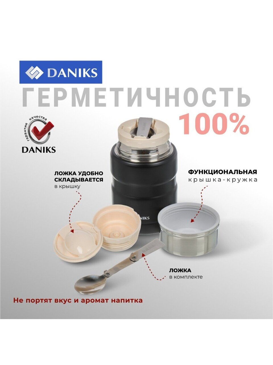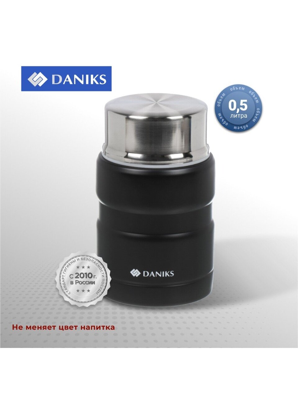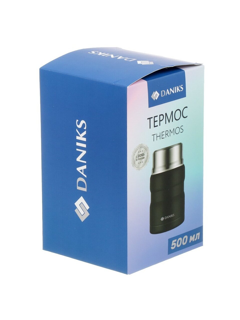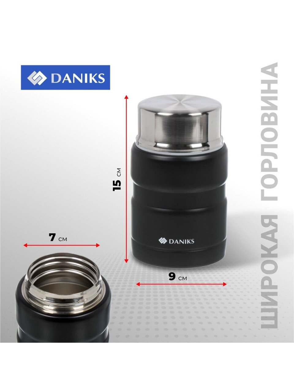 Термос Daniks 0.5 л с широкой горловиной и ложкой — держит тепло и холод до 24 часов, идеален для еды в дороге, на работе и в путешествиях.