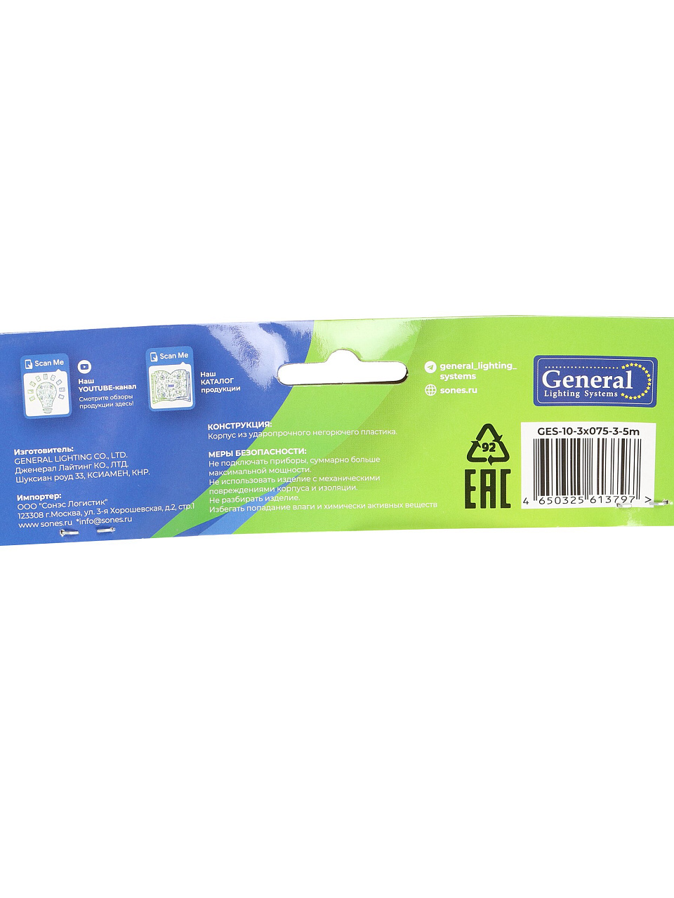 - Длина 5 метров и провод ПВС 3х0.75 мм² — оптимально для размещения в любой комнате или на даче, гарантия 36 месяцев.