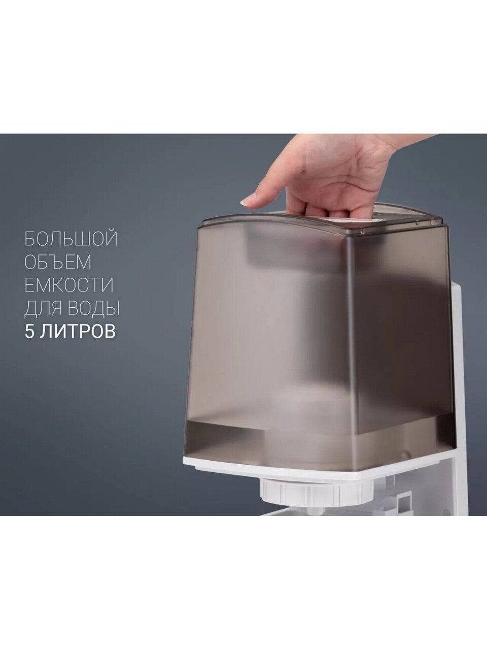 - Резервуар для воды объемом 5 литров обеспечивает длительную работу без необходимости частой дозаправки.