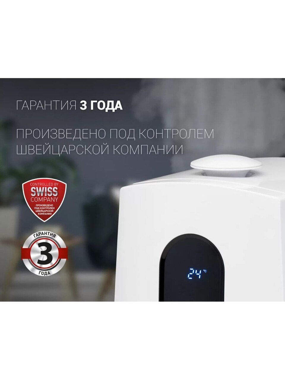 - Расход воды 400 мл/ч обеспечивает эффективное увлажнение воздуха в помещении.