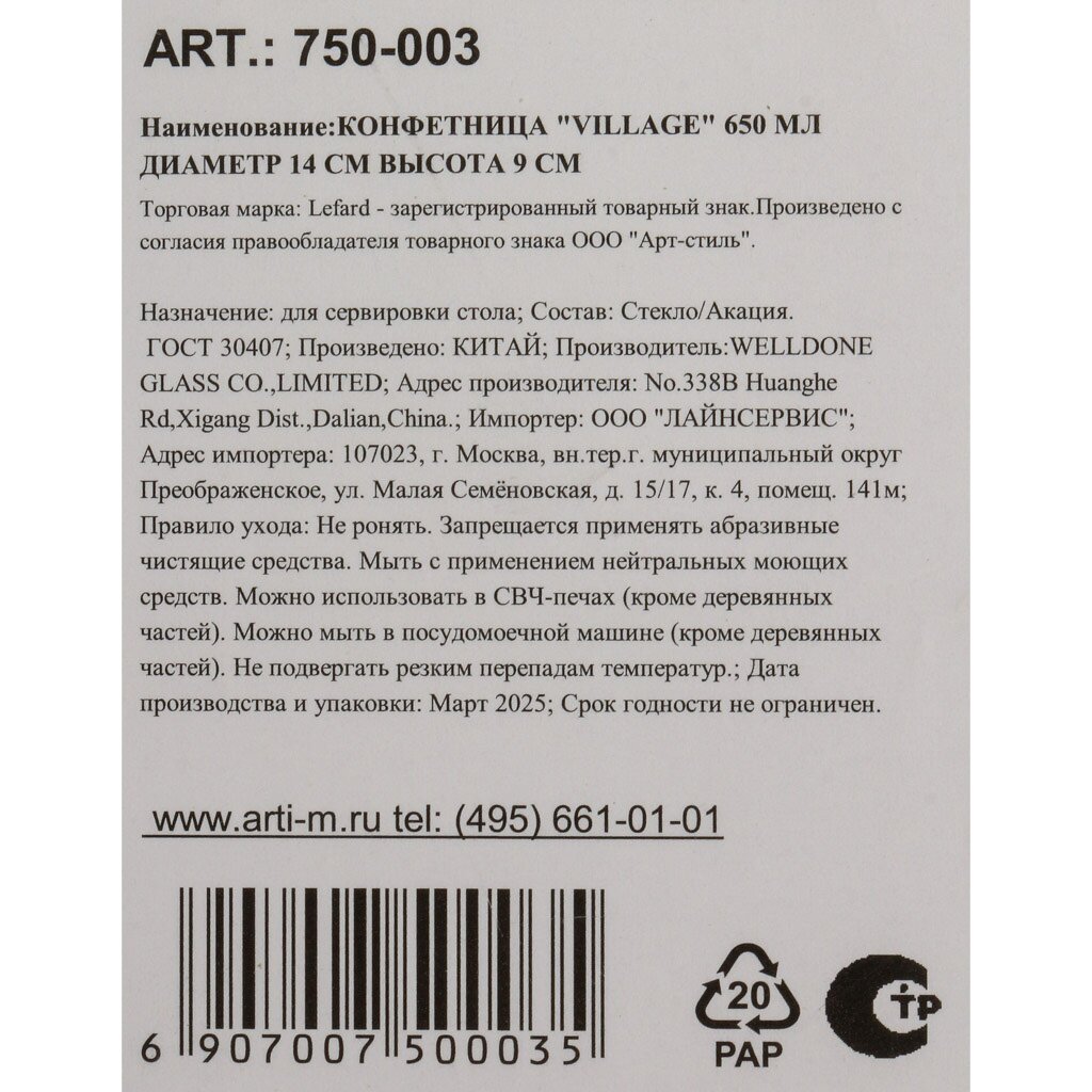 Ваза для конфет Lefard Village 14х9 см — стеклянная конфетница для стильного хранения сладостей дома и на даче. Прозрачный дизайн, подходит для СВЧ и посудомоечной машины.