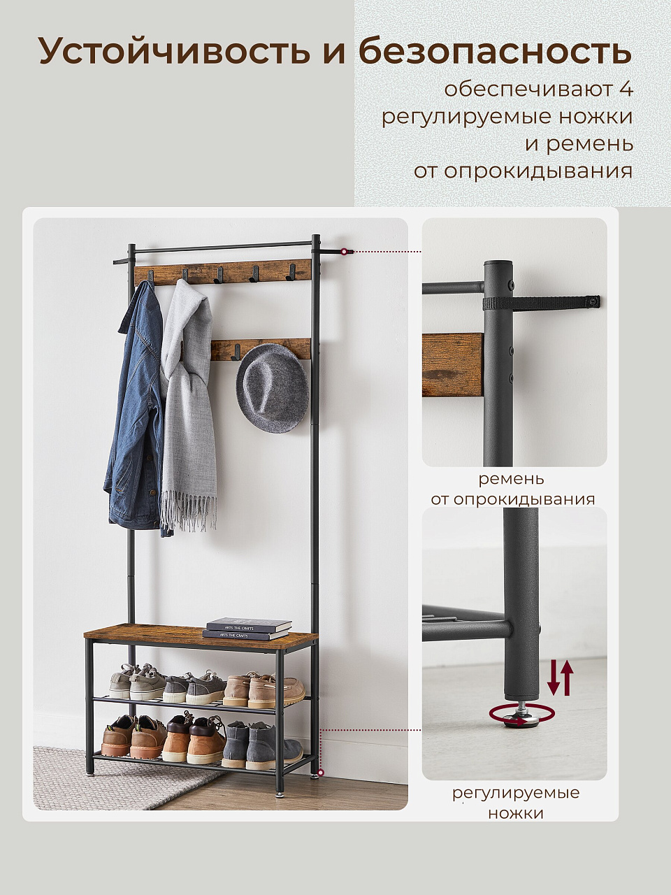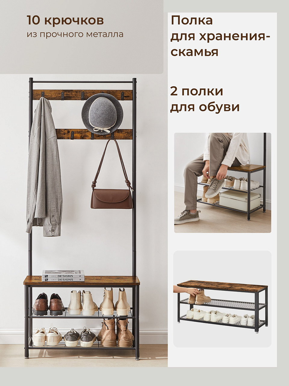 Вешалка в прихожую 70×32×175 см Лофт: компактное хранение до 80 кг, 10 крючков и полка для обуви — стиль и порядок в вашем доме