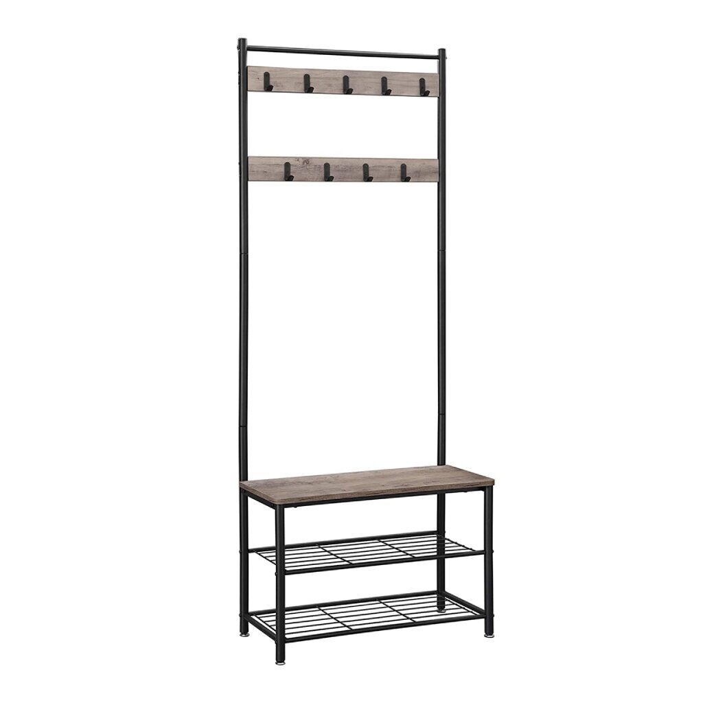 С помощью этой великолепной вешалки вы сможете избавиться от беспорядка в прихожей; сочетание четких линий и стиля лофт придаст ей современный и элегантный шарм. Это обувница, скамейка и вешалка в одном флаконе. Эта вешалка для обуви приглашает гостя почувствовать себя как дома