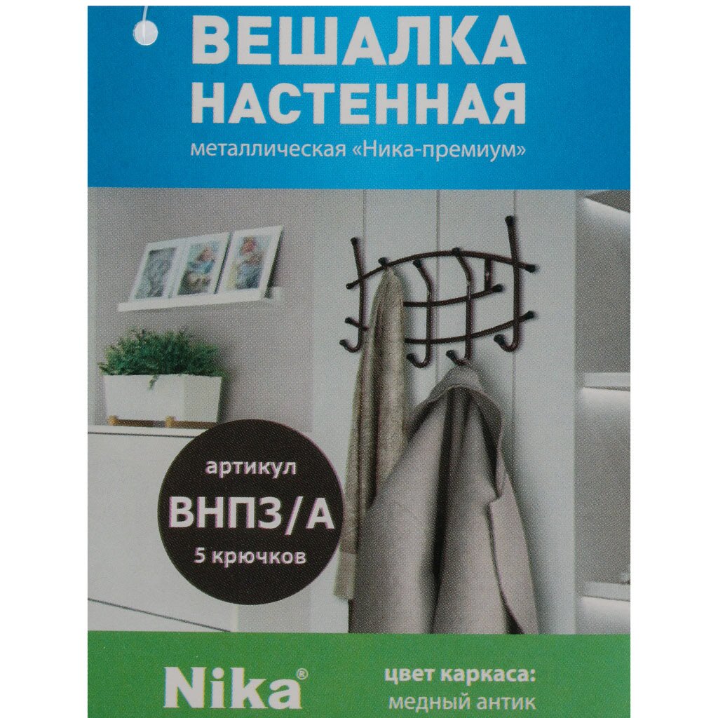 Вешалка настенная Nika на 5 крючков — компактное решение 44×30 см для хранения одежды и аксессуаров, стильный медный антик, металл, выгодная цена.