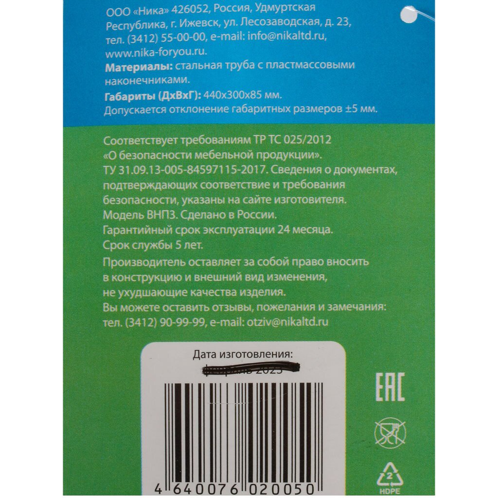 Длина — 44 см, высота — 30 см, ширина — 8.5 см. Изготовлена из металла с покрытием «медный антик», цвет — коричневый. Производитель — Nika, Россия.