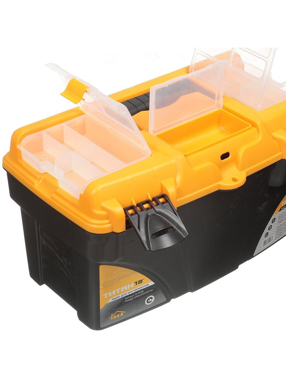 При производстве изделий Idea используются исключительно высококачественные полимеры. Именно поэтому ящик для инструментов Титан М 2938 отличается исключительной долговечностью и прочностью. Популярность этой модели обеспечивают невысокая стоимость, оригинальный дизайн и отличная функциональность.