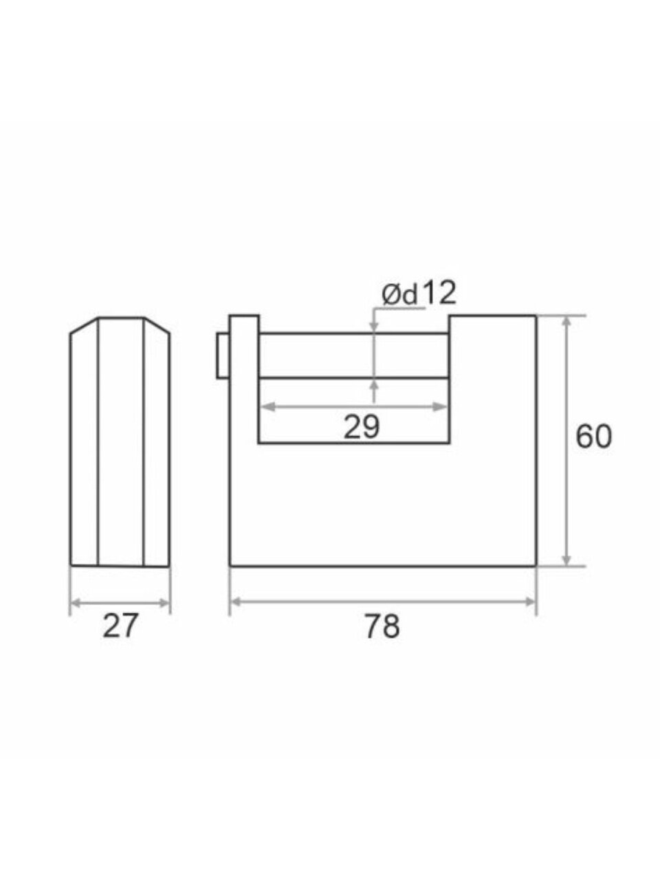 Замок навесной гаражный с горизонтальной дужкой. Имеет ударопрочный корпус и полузакрытую конструкцию, что дополнительно защищает замок от взлома.