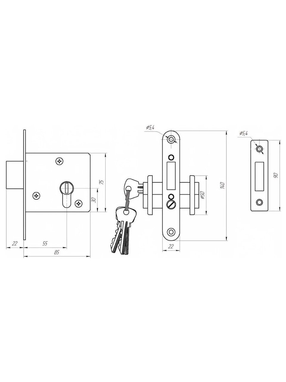 - Комплектация: замок, ответная планка, накладки - 2 шт; комплект крепежа.